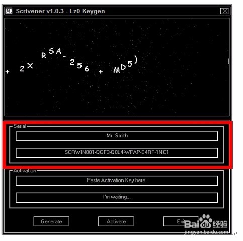 5、打開后點(diǎn)擊Generate,復(fù)制生成的Serial