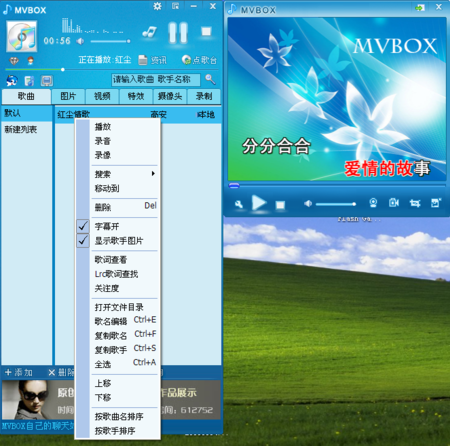 mvbox虛擬視頻擁有小巧精致、操作簡捷、不占資源、功能強大的特點,深得用戶喜愛,并且成為目前國內(nèi)最受歡迎的簡單實用的卡拉OK音樂播放和虛擬視頻軟件。