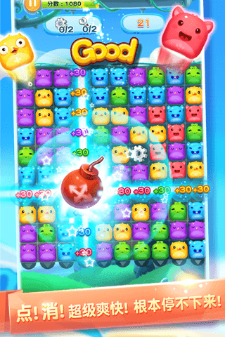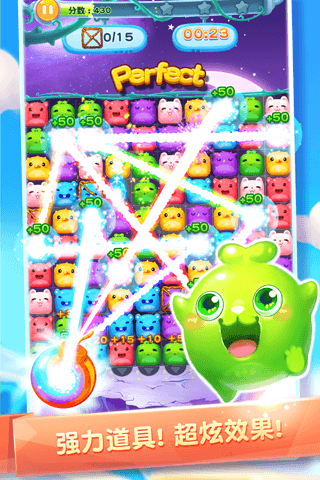 3、炫目華麗的特效,直線特效、爆炸特效、同色消除……多重創(chuàng)意組合搭配,加上激萌的特效音,讓你的視覺和聽覺同時感受超爽體驗;