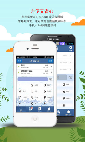 馬上下載使用邦邦掌柜吧!不用擔(dān)心任何的扣費(fèi),從注冊到使用,再到撥通電話,都不需要自己掏出任何的一分錢。多種免費(fèi)獲取通話時(shí)長的方法,盡享真正的免費(fèi)網(wǎng)絡(luò)電話!還有很多免費(fèi)的神奇功能,快去體驗(yàn)吧!邦邦掌柜伴你免費(fèi)走天下!