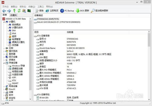 四、AIDA64查看硬盤詳細信息