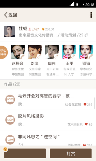 5、【作品】:不僅能看到感興趣的人的作品,還能閱讀各路大神的內(nèi)容分享,你也可以參與其中發(fā)布你的經(jīng)驗與感悟并由你給它定價,人人都是大作家。