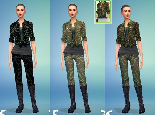 模擬人生4女式迷彩軍裝;新增一款女式迷彩軍裝,用的EA游戲本身的模型,但是是一件全新的物品,喜歡的玩家不妨一試。【使用方法】
