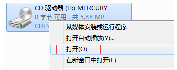 請打開 計算機(jī)(或我的電腦),找到CD驅(qū)動器,右鍵選擇 打開,如下: