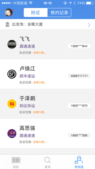 1.查看你附近的快遞員的業(yè)務(wù)信息;2.通過電話預(yù)約快遞員的方式寄快遞;(iPad 與 iPod 設(shè)備不支持撥打電話)
