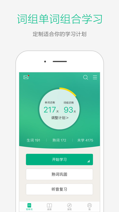 自我定制CET4,CET6或者考研單詞學(xué)習(xí)內(nèi)容。 將所有單詞分為生詞和熟詞。
