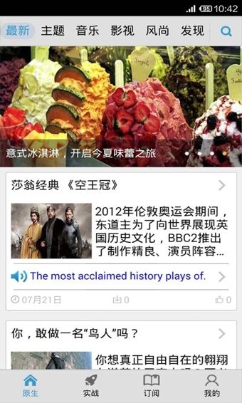 英語(yǔ)沙塵暴下載是一款雙語(yǔ)資訊閱讀軟件。該軟件界面非常清爽簡(jiǎn)約,功能一應(yīng)俱全,并且具有原創(chuàng)話(huà)題、原聲聽(tīng)力、挑戰(zhàn)翻譯等功能,還可以用歡樂(lè)積分去兌換禮品。