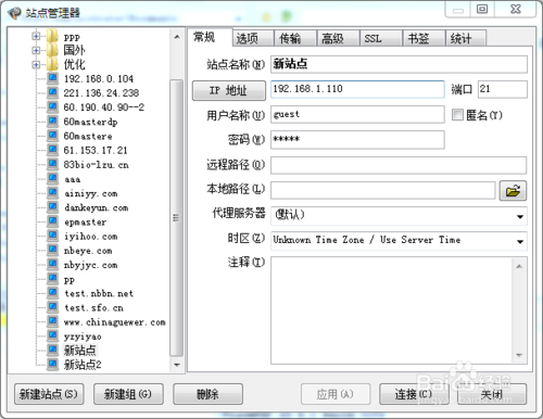 如果要將站點進行分類,可以點擊“新建組”再把站點加入到相應(yīng)的文件組。