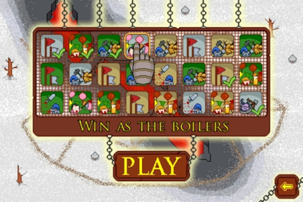 《權(quán)利的抽風 Twitchy Thrones》是一款像素風的策略游戲,較為簡單復古的畫面反而更增添了史詩感,戰(zhàn)斗會以即時戰(zhàn)斗的形式進行操作,敵我雙方甚至三方的軍隊會在一個小小的棋盤中進行戰(zhàn)斗,棋盤中的路線犬牙交錯,玩家需要拖動我方的士兵侵入地方的據(jù)點與敵軍進行交戰(zhàn),將之消滅后就可以將該劇點占領,而每一個所占領的據(jù)點會每十秒生存兩名士兵。