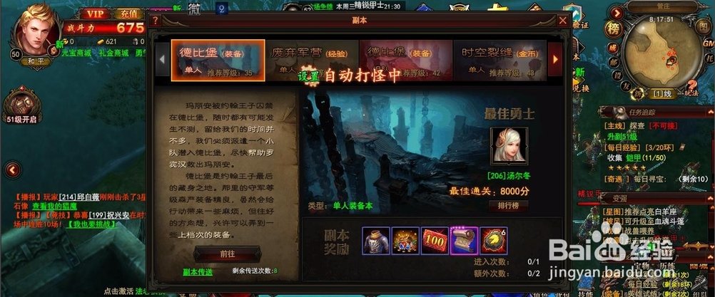 4.魔窟,每隔2個小時會開啟30分鐘的魔窟時間,在活動快開始的時候,提前準備好,看到活動公告在什么地圖,第一時間的過去找傳送門。分秒必爭。