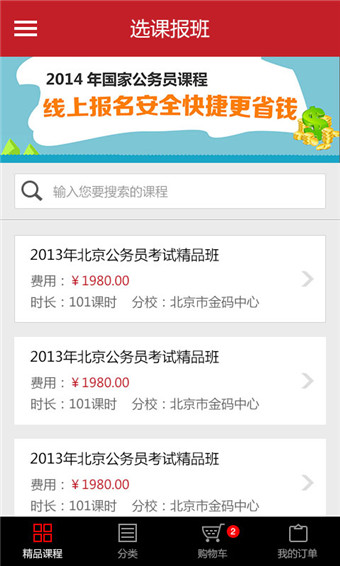 1:選課報班 一鍵搞定,快速檢索全國各類考試課程,選名師、挑課程,完成一鍵支付2:圖書商城 天天優(yōu)惠,公考輔導圖書天天限時特惠,最新版公考教材、試卷在線訂購
