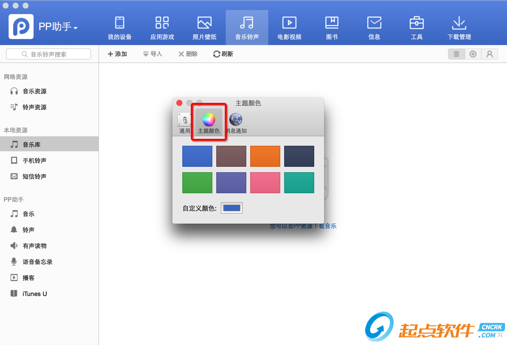 新增主題模塊,讓您隨意切換不同的色彩主題,更支持自定義主題,點擊【PP助手】- 【偏好設置】-【主題模塊】,進行更換主題: