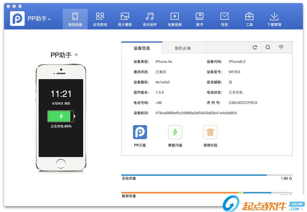 pp越獄助手怎么越獄?手機設備連接PP助手(Mac版),點擊【一鍵越獄】按鈕