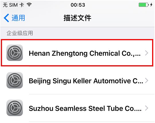 4.在【描述文件】中找到相應(yīng)的描述文件點擊并選擇信任