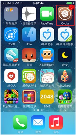 步驟一:進(jìn)入手機(jī)桌面,啟動應(yīng)用程序“Cydia”