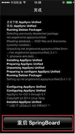 4、等待10-30秒安裝完成后,點擊“重啟SpringBoard”