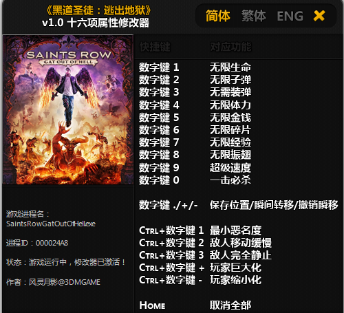 數(shù)字鍵 1 - 無(wú)限生命數(shù)字鍵 2 - 無(wú)限子彈
