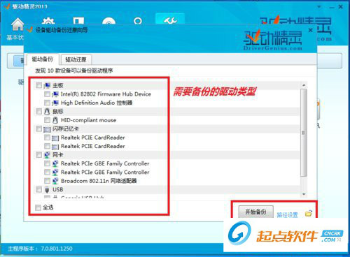 在選擇備份驅動后,會跳出對話框讓你選擇則備份的驅動類型。可以根據(jù)自己的需要選擇備份的內容。我們還可以選擇備份路徑