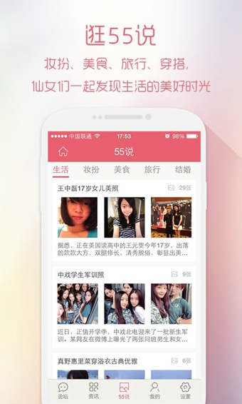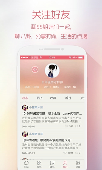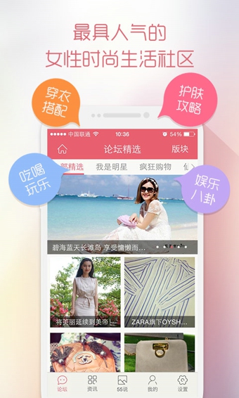 【愛55,愛生活】55BBS我愛購物網(wǎng),中國第一女性消費門戶!女性時尚購物,化妝美容社區(qū)。55BBS匯集全球頂級品牌新品資訊,第一時間直擊世界時尚核心,強勢達人資源,十年累計,一心為你!時尚消費,快樂分享。【軟件特點】