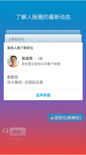 -人脈拓展:輕松鞏固職場人脈,隨時獲取職位變動等人脈動態(tài)。