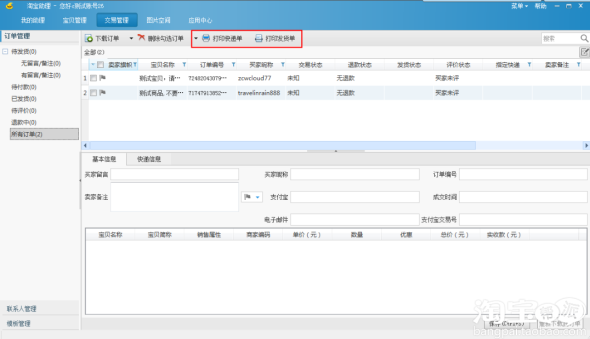 3、快遞單&發(fā)貨單模板設(shè)置完成后,即可在訂單管理中下載訂單,打印快遞單及發(fā)貨單