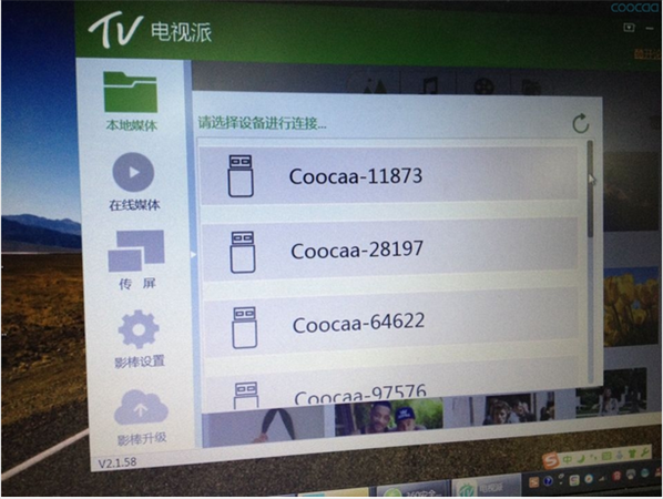 然后啟動(dòng)PC端酷開電視派。電視派會(huì)自動(dòng)查找設(shè)備。看到電視的IP地址沒,那個(gè)就是你家的電視。點(diǎn)擊即可連接。