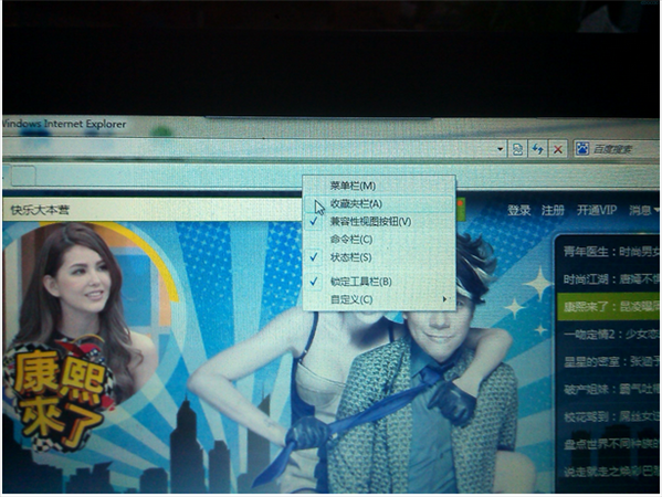 這時(shí)要對瀏覽器進(jìn)行一步簡單的設(shè)置,把鼠標(biāo)指針指到狀態(tài)欄上右擊,在出現(xiàn)的菜單里將命令行前面的對號(hào)勾選上