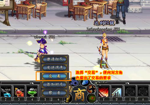 2、在玩家交互界面里,選擇“交易”,便向?qū)Ψ浇巧岢隽私灰椎囊蟆?br />