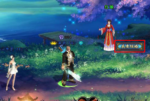 前去”緣生湖”找尋NPC—“紅娘”鼠標(biāo)左鍵選擇”我要結(jié)婚”選項(xiàng),然后再深思熟慮后,選擇確定,你的系統(tǒng)提示區(qū)會(huì)顯示提示需要攜帶結(jié)婚的物品,當(dāng)沒(méi)有物品時(shí)則無(wú)法確定。如雙方都有物品是點(diǎn)擊確定即完成結(jié)婚,如圖: