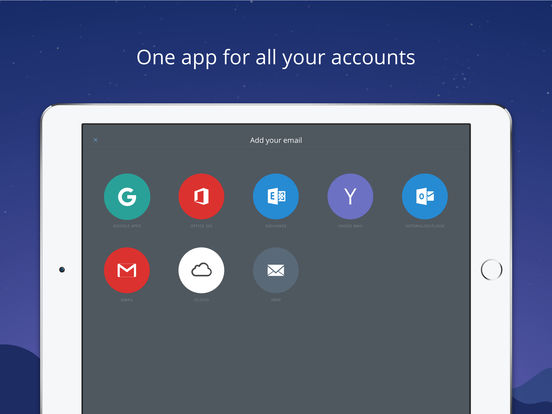 支持任意郵箱類型Gmail、Hotmail、Yahoo Mail、Outlook.com、iCloud、Google Apps、Microsoft Exchange、Office 365、Mail.com、GMX、AOL 以及其它 IMAP 帳戶。