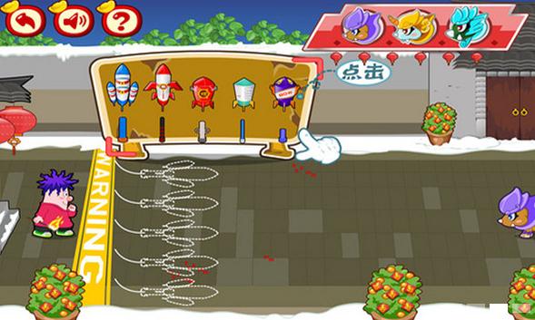 3、點(diǎn)擊爆竹,再點(diǎn)擊正確的位置,將爆竹安裝好,驅(qū)趕年獸吧!