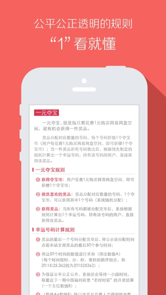 網(wǎng)易官方出品,給1元一個(gè)機(jī)會(huì),玲瑯滿目的商品任你挑選。1、趣味活動(dòng)方式:只花1元就能獲得價(jià)值過(guò)萬(wàn)的獎(jiǎng)品,運(yùn)氣和實(shí)力并存;
