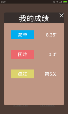 選擇界面游戲難度和模式進入;點擊開啟的游戲關(guān)卡進入畫面;玩法很簡單,點擊與背景色相同的格子即可消除;游戲中看誰時間最短,那么來挑戰(zhàn)吧!