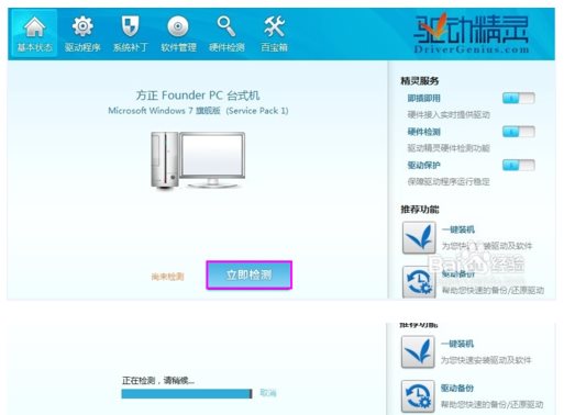 ①打開驅動精靈,點擊立即檢測。
