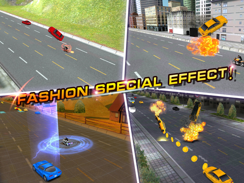 如果您有足夠的實(shí)力,那么跟黑名單的BOSS來一場吧。只要打敗他,他專屬摩托就是你的。多元化的游戲內(nèi)容如果遇見警車或者運(yùn)鈔車請打起十二分精神,他們會給您制造很大的麻煩道具---有障礙檔在你前面了?沒關(guān)系,轟開它。