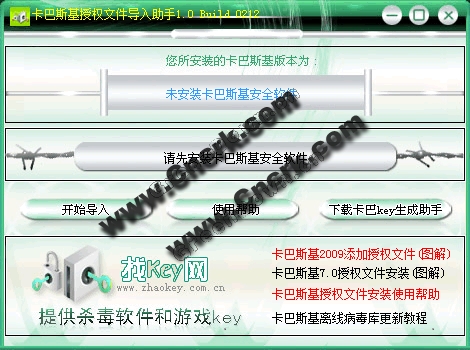 本工具是一款輔助軟件,幫助用戶導入卡巴斯基授權文件和解決在導入授權文件中遇到的常用問題。本工具為綠色版,無任何插件。