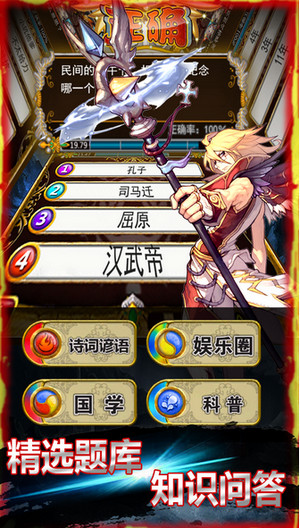 全民問戰(zhàn)是國內第一款問答類卡牌對戰(zhàn)游戲。玩家在探險過程中需要回答各個科目的問題?;卮鹫_就可以激活自己的卡牌英雄對敵人發(fā)起攻擊。游戲中的你需要擊敗惡魔大軍,救回自己的伴侶。【游戲特點】