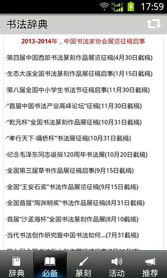 書法辭典 v2.22 安卓版 1、書法辭典海量收錄歷代書法經(jīng)典墨跡,書家必備的書法字典;