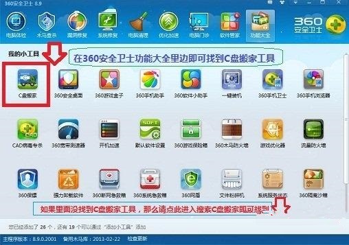 如果采用第一種方法,效果還是不明天,C盤(pán)剩余空間依然很少的話(huà),那么我們需要對(duì)一些軟件進(jìn)行系統(tǒng)搬家,我們可以將安裝在C盤(pán)的軟件全部轉(zhuǎn)移搬到D盤(pán)或者其他盤(pán)。這樣很多人會(huì)問(wèn),那不是要先卸載C盤(pán)軟件再下載安裝在D盤(pán)嗎?其實(shí)不要這么麻煩,使用360安全衛(wèi)士的搬家工具,即可一鍵將C盤(pán)軟件轉(zhuǎn)移到D盤(pán),無(wú)需再次安裝。