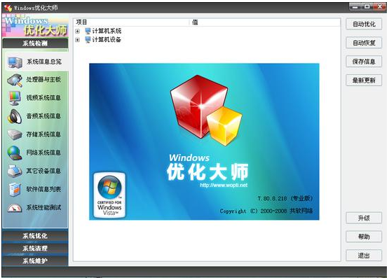 1、詳盡準(zhǔn)確的系統(tǒng)信息檢測。Windows優(yōu)化大師深入系統(tǒng)底層,分析用戶電腦,提供詳細(xì)準(zhǔn)確的硬件、軟件信息,并根據(jù)檢測結(jié)果向用戶提供系統(tǒng)性能進(jìn)一步提高的建議。
