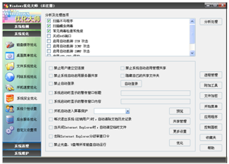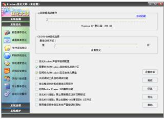 1、具有全面的系統(tǒng)優(yōu)化選項(xiàng)向用戶提供簡便的自動優(yōu)化向?qū)?br />優(yōu)化項(xiàng)目均提供恢復(fù)功能
