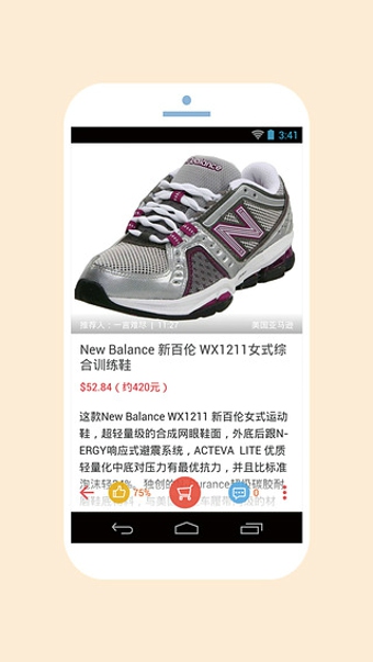 2、網(wǎng)友爆料互動(dòng):每天更新幾百條網(wǎng)友精品爆料、網(wǎng)友參與實(shí)時(shí)互動(dòng)。3、云端收藏折扣:登錄后可收藏折扣內(nèi)容至云端,電腦上也可方便查看。4、PUSH“推送服務(wù)”:便于網(wǎng)友們第一時(shí)間接收到每天精挑細(xì)選的特價(jià)信息,節(jié)省網(wǎng)友珍貴的時(shí)間。