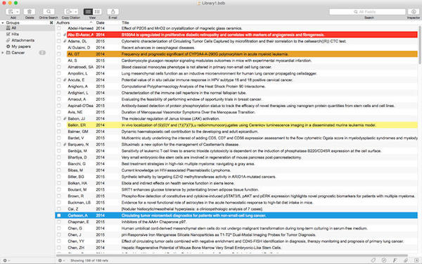1、Bookends是一款功能齊全使用方便的參考書目與文獻管理工具,可輕松地從瀏覽器在線導入數(shù)百個附注,參考和信息管理系統(tǒng)。2、軟件可使用內(nèi)置在瀏覽器中的插件下載或通過網(wǎng)頁點擊參考各類PDF格式的文件,自動搜索pubmed發(fā)現(xiàn)所需的資料。強大搜查可以進一步細化鍵入的關(guān)鍵詞。
