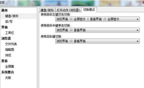 5.最后一個(gè)用來(lái)修改鼠標(biāo)雙擊事件,切換看圖界面和管理界面,以及全屏切換的功能,個(gè)人喜歡鼠標(biāo)雙擊切換全屏,將其設(shè)置修改即可。