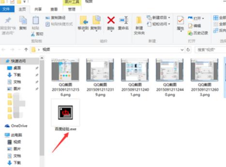 7.從下圖的示例中,我們看到箭頭所指的"百度經(jīng)驗(yàn).exe"就是我們制作好的圖片視頻,可以打開(kāi)欣賞了。