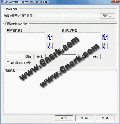 批量修改文件擴(kuò)展名 V1.02 簡(jiǎn)體中文綠色免費(fèi)版 這是一個(gè)用來(lái)對(duì)大量文件批量修改擴(kuò)展名的工具,該工具編寫的最初動(dòng)因是因?yàn)樽鳛槌绦騿T的我在某web應(yīng)用的原型靜態(tài)頁(yè)面文件出來(lái)后,總是要將htm文件改為jsp后綴,由于原型文件數(shù)量太多,不勝其煩,當(dāng)時(shí)就寫了個(gè)命令行工具,偷偷懶,后來(lái)發(fā)現(xiàn)很多情況下,都需要批量的修改文件擴(kuò)展名,遂封裝成一個(gè)圖形工具!