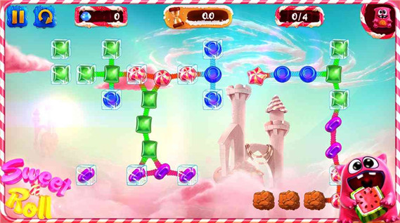 《糖果怪獸》是一款類似于《割繩子2》的休閑益智小游戲。整個游戲的畫面色彩明亮明顯,玩家將會置身于一個糖果的童話世界,玩法也類似割繩子,用點擊組合消除糖果的方式,給游戲里的小怪物吃到糖果即可,十分容易上手。游戲畫面繽紛夢幻,色彩鮮艷多變,讓人仿佛置身于卡通夢幻的王國。每個關(guān)卡都布滿了色彩斑斕,造型可愛的誘人糖果,主角皮特是一只紅色的小怪獸,一雙大眼古靈精怪的盯著你。同時也是能夠注意到畫面的上方可以點擊消除的分數(shù)、用時和需要獲得的糖果數(shù)量。所以只有讓小怪物吃到足夠的糖果才能過關(guān),同時時間越少、分數(shù)越高越好,最高是三星過關(guān)。