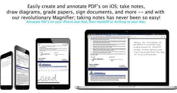 4、PDF創(chuàng)建,編輯和查看(在iOS上,批注的PDF與自由手寫,筆記,紙張等級,等等 - 在iCloud中較大的PDF文件,如大型的電子書,不推薦)。