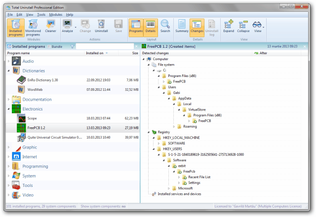使用 Total Uninstall 的“已安裝程序”模塊可以分析已安裝程序并創(chuàng)建安裝日志。這可用于執(zhí)行徹底的程序卸載,即使沒有自身卸載程序的幫助。