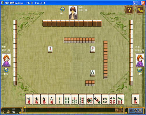 四川麻將牌數(shù)只有萬、筒、條。一共是108張牌。沒有風(fēng)牌、花牌與箭牌。(1) 莊家十四張,先出牌,閑家每人十三張牌。